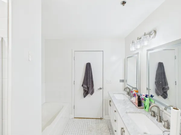 Fabulous South Loop corner 2bd/2ba with deeded parking INCLUDED! This home features a desirable split floor plan, brand new flooring and updated kitchen cabinets installed this past year, plus a private south-facing balcony perfect for entertaining. In-unit W/D and modern kitchen finishes with stainless steel appliances. Spacious master suite with updated bathroom and ClosetMaid-organized master and hallway closets. Second bedroom enclosed with a window and door - ideal for roommates or a home office. Currently tenant-occupied; can be purchased as an investment property, or tenants are aware of the sale and will move with notice. Previously rented fully furnished, making for an easy transition. Full-amenity building with doorman, workout room, business center, dog run, and professional management. Steps to public transportation, expressways, the Loop, restaurants, grocery stores including Mariano's, the lake, Soldier Field, retail, and more - a fantastic South Loop value!