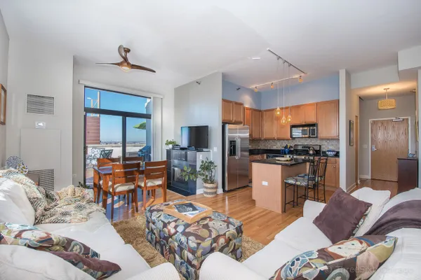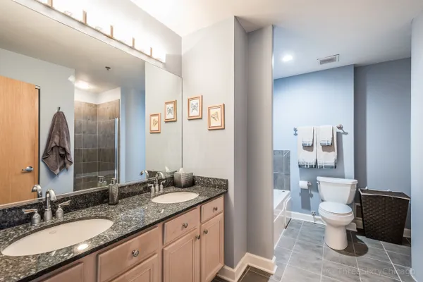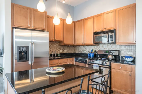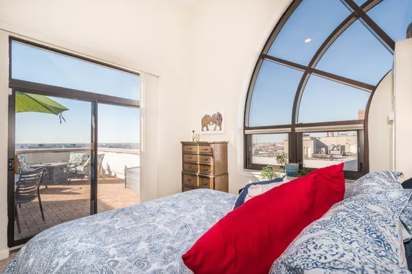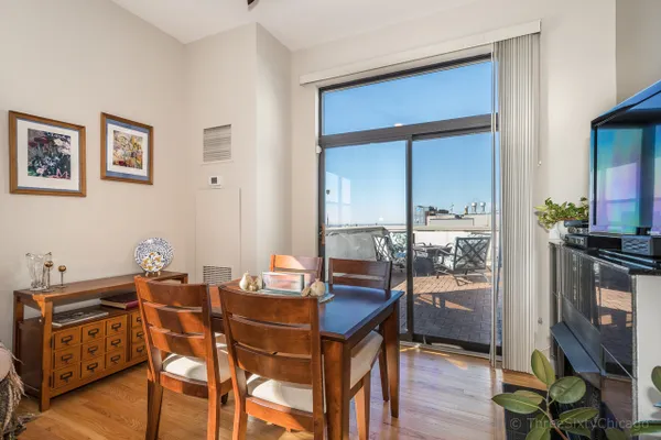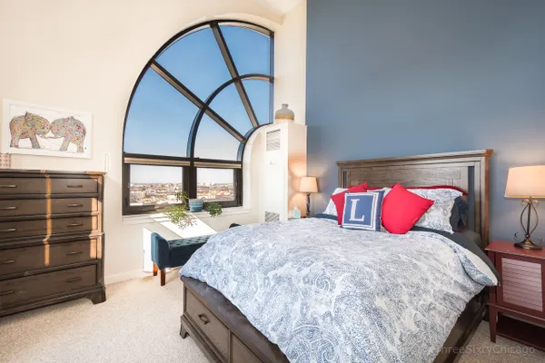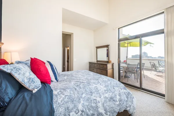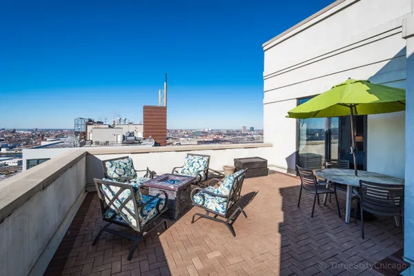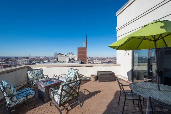 Penthouse with 500SF terrace including views of the lake, north to Chicago skyline and west as far as the eye can see. This 2 Bedroom, 2 bath condo includes 14 ft. ceilings. Master with unique arched window, walk-in closet and direct access to the terrace. Private bath with double bowl sink, separate tub and shower. Enjoy dining right next to the fireplace, while a low burning fire cozies up the atmosphere. Step outside and dine alfresco while you take in the views of the urban skyline. Enjoy the firepit at night, and during the day tend to your potted urban garden including, flowers, tomatoes, herbs and strawberries. The owner is willing to leave the patio furniture and gas grill! The building has a part time doorstaff, business center and exercise room. A storage locker is included. Walk to the loop, lake, groceries stores and restaurants. Easy access to public transportation and a bus stop within steps from your front door. Easily accessible to major expressways. Parking available for $30K. Move in time to enjoy the summer in this penthouse with spectacular outdoor terrace.