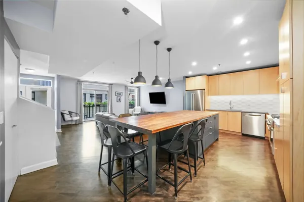 Enjoy the best of both worlds with this spacious townhome-style residence offering all the amenities and security of a high-rise building. With 3 bedrooms, 2.5 baths, and two private outdoor spaces, this home lives like a single-family, yet benefits from full-service building perks. Enter through the beautifully landscaped fourth-floor courtyard into a welcoming freshly tiled foyer with seating space and two oversized closets-perfect for coats and seasonal storage. The main level features dark oak hardwood floors and a fully renovated kitchen designed for both function and style. Highlights include quartz countertops, 48" birch cabinetry, textured tile backsplash, premium appliances (Thermador, Bosch, and more), chic pendant lighting, and a large island with butcher block top, built-in wine fridge, and custom eat-in dining table. The open-concept living room easily accommodates a large sectional and flows seamlessly onto the private patio, ideal for indoor-outdoor entertaining and grilling. Two essential updates add modern convenience: a main-level powder room and a walk-in pantry offering additional storage. Upstairs, the expansive primary suite fits a king bed with room for a sitting area and features a professionally organized walk-in closet and a brand-new en-suite bath. The spa-quality bathroom is equipped with a double quartz vanity, designer fixtures, custom lighting, fresh tile, and a curbless walk-in rain shower with integrated niche and seamless floor drain. A second spacious bedroom, updated guest bath, and full walk-in laundry room complete this level. On the top floor, you'll find new luxury vinyl plank flooring, and a versatile flex space-perfect as a third bedroom, home office, family room, or a combination of all three. This level opens to a sunny and supersized, south-facing rooftop deck for relaxing or entertaining outdoors. Unmatched value with HOA dues that cover nearly everything except electricity. What's included? Exterior maintenance (facade, roof, etc.), professional landscaping, water, gas, cable, internet, building insurance, 24-hour door staff, elevators, a fully equipped fitness center, meeting room, bike storage, large storage lockers, and on-site management and maintenance. Perfectly located in a well-maintained building with all the creature comforts and a highly functional layout- this is city living without compromise! One deeded garage parking space available for $25K additionally.